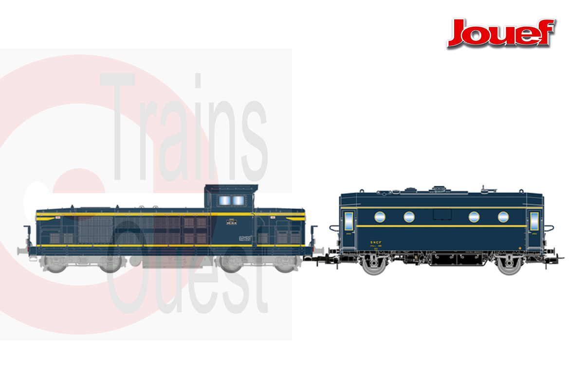 Désignation : locomotive diesel 040 DG-18, jaune/bleue + fourgon-chaudière 800 kg/h, SHmfp 568, livrée bleue foncé