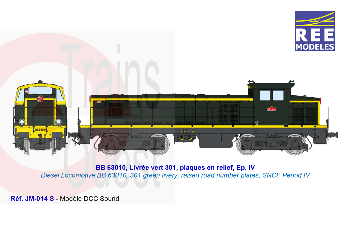 Désignation : BB 63010, Livrée vert 301, plaques en relief